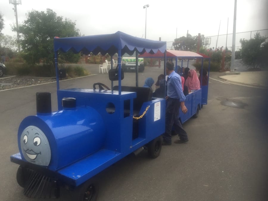 Have a look at our Trackless Train! The perfect addition for your next fete, event or festival! Our Train consists of two carriages and is able to hold up to twenty passengers comfortably. All we require is enough space to turn around (recommend a minimum turning circle of 20 metres) and it is usually a good idea to pick a course away from the main foot traffic. You can hire our Trackless Train for events throughout Melbourne and regional Victoria, but be sure to get in quick! Hire rate is $1575 for up to five hours within Metropolitan Melbourne. Make sure you check out the rest of our
