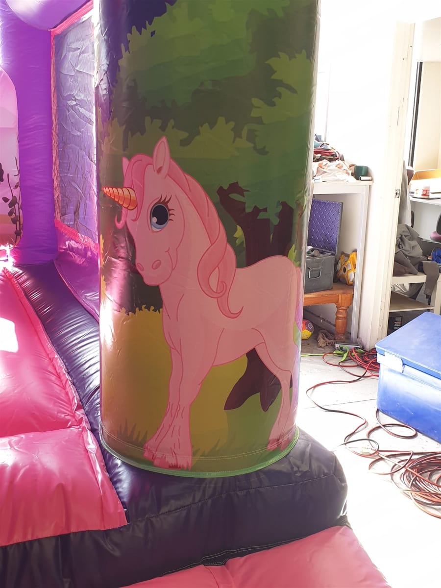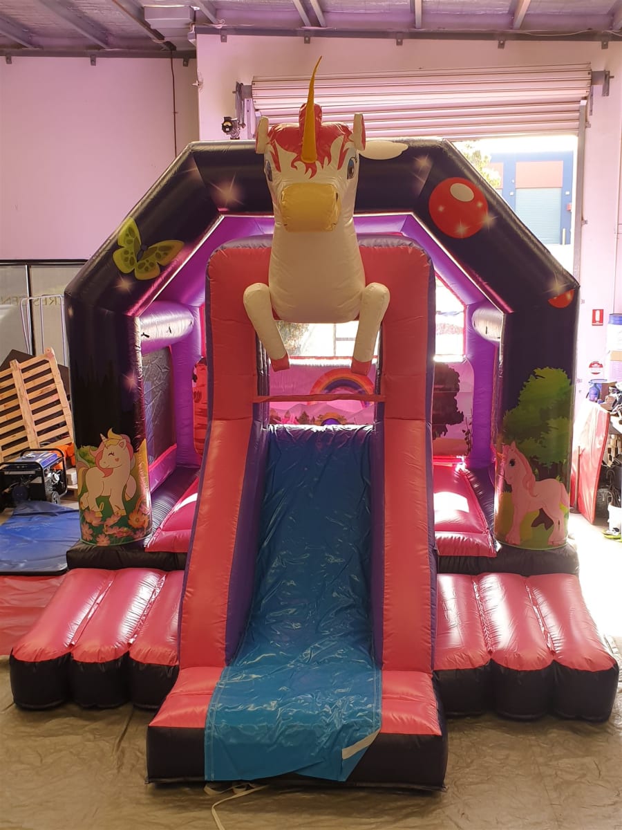 Have a look at our brand new magical Unicorn Combo Jumping Castle now available for hire across Melbourne in areas such as Blackburn, Rowville, Pakenham, Mornington and Bayside. 4m wide 5.5m deep and 4m high, this fresh castle has plenty of jumping space, sharp printing and a slide in the front.